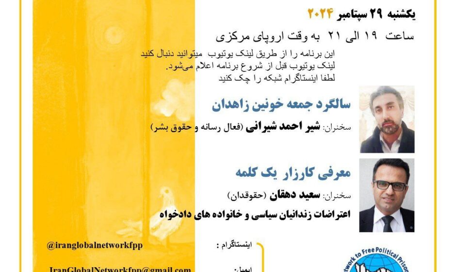 شبکه جهانی برای آزادی زندانیان سیاسی و عقیدتی در ایران > اعدام > سومین نشست شبکه جهانی برای آزادی زندانیان سیاسی و عقیدتی در تاریخ ۲۹ سپتامبر۲٠۲۴ برابر با ۸ مهر ۱۴٠۳