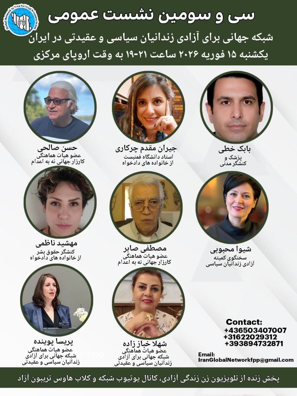 ۳- کنفرانس جنبش های اعتراضی پس از اعتراضات و قتل عام مردم در ایران و گردهمایی حمایتی مقابل پارلمان اروپا(پریسا پوینده)