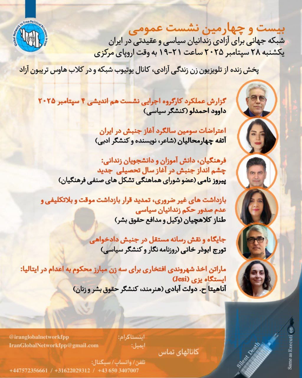 - هم اندیشی: زمینه و امکان سنجی تجمع(تحصن) هماهنگ اعتراضی به مجازات اعدام و در خطر بودن جان زندانیان سیاسی و عقیدتی
