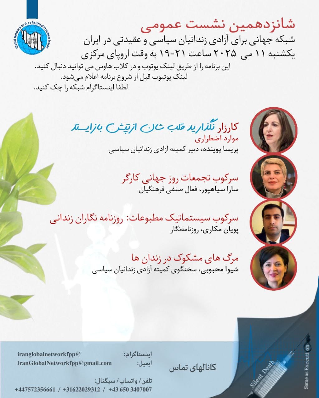یکشنبه ۱۱ می ۲۰۲۵ ساعت ۱۹-۲۱ به وقت اروپای مرکزی این برنامه را از طریق لینک یوتیوب و در کلاب هاوس میتوانید دنبال کنید.لینک یوتیوب قبل از شروع برنامه اعلام میشود.لطفاً اینستاگرام شبکه را چک کنید.